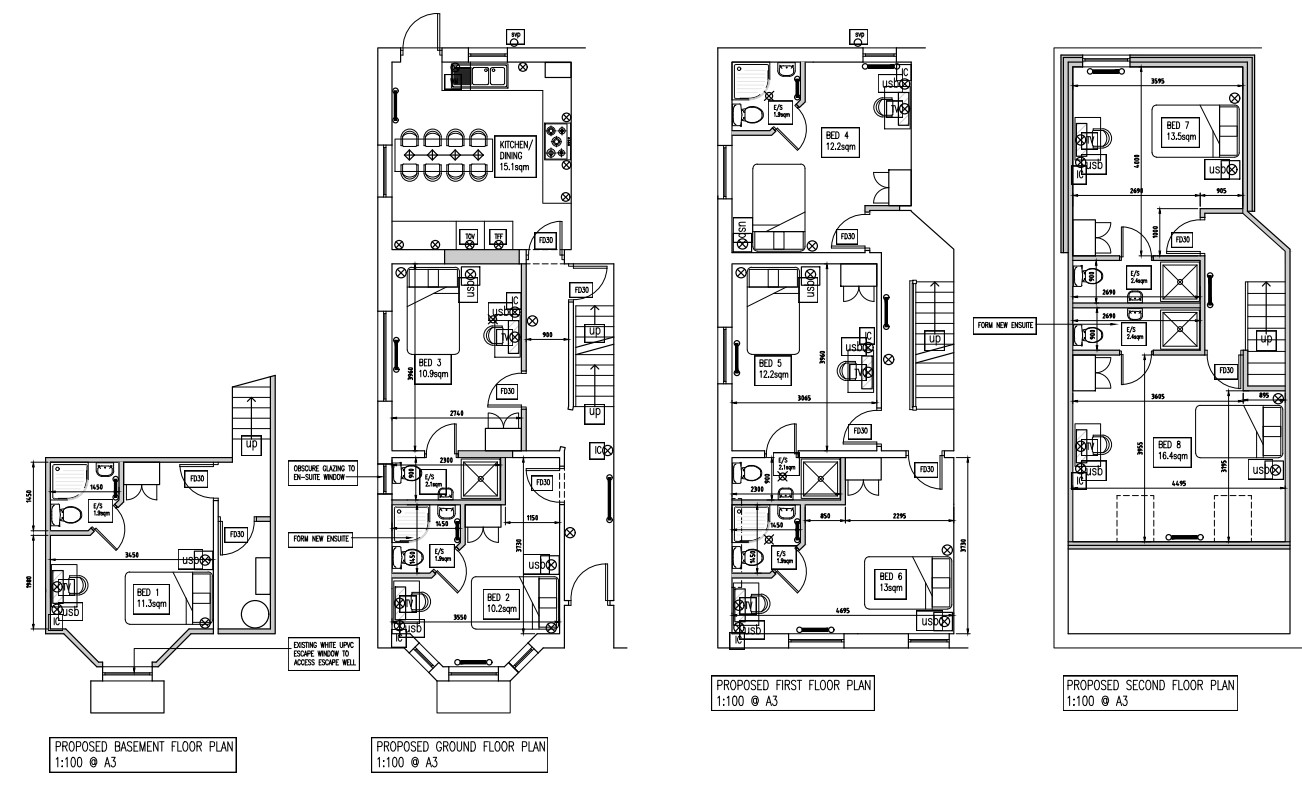 With ownership secured, we moved into design and layout planning in earnest. While a 6-bed layout was achievable by default, there was an opportunity to go further. On 15th January 2025, we made the decision to proceed with an 8-bedroom internal layout, even if it meant initially doing a 6-bed under permitted development and awaiting planning approval for the full conversion.