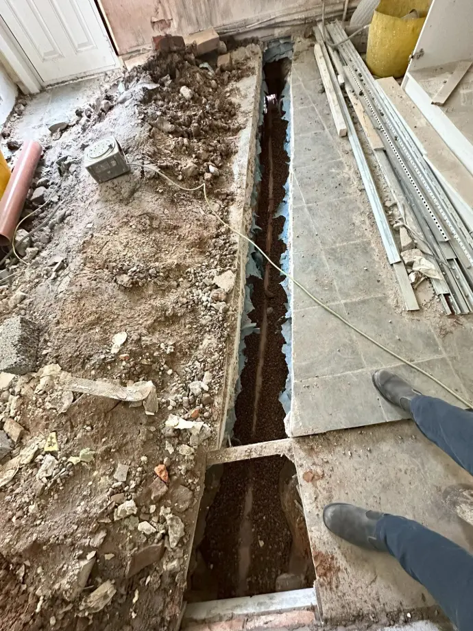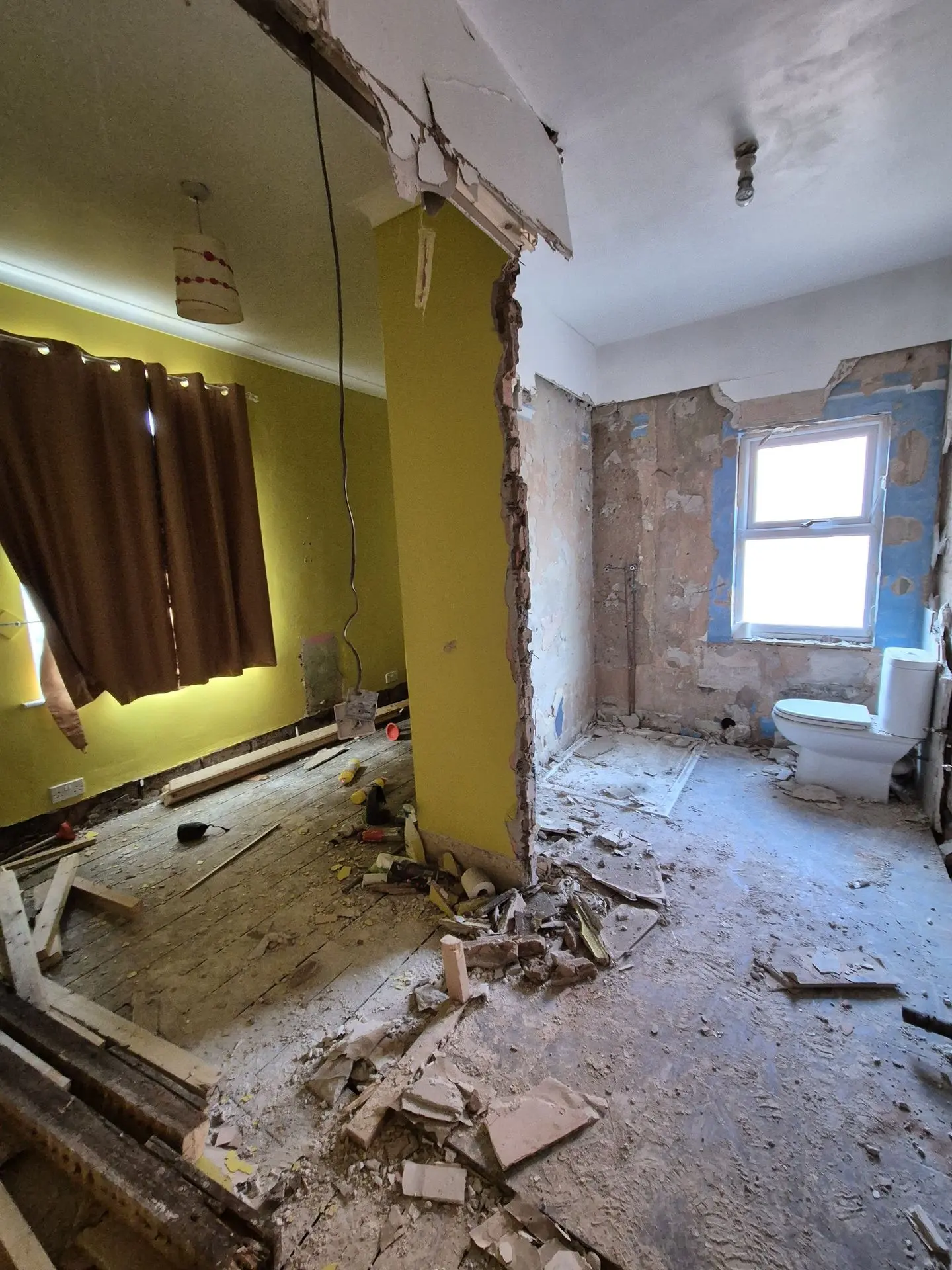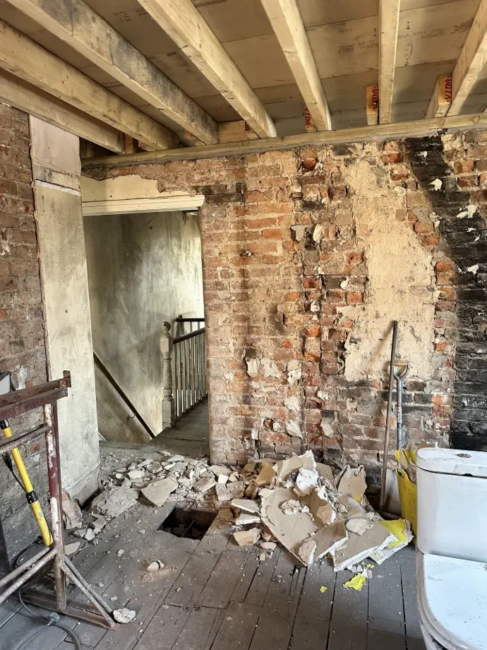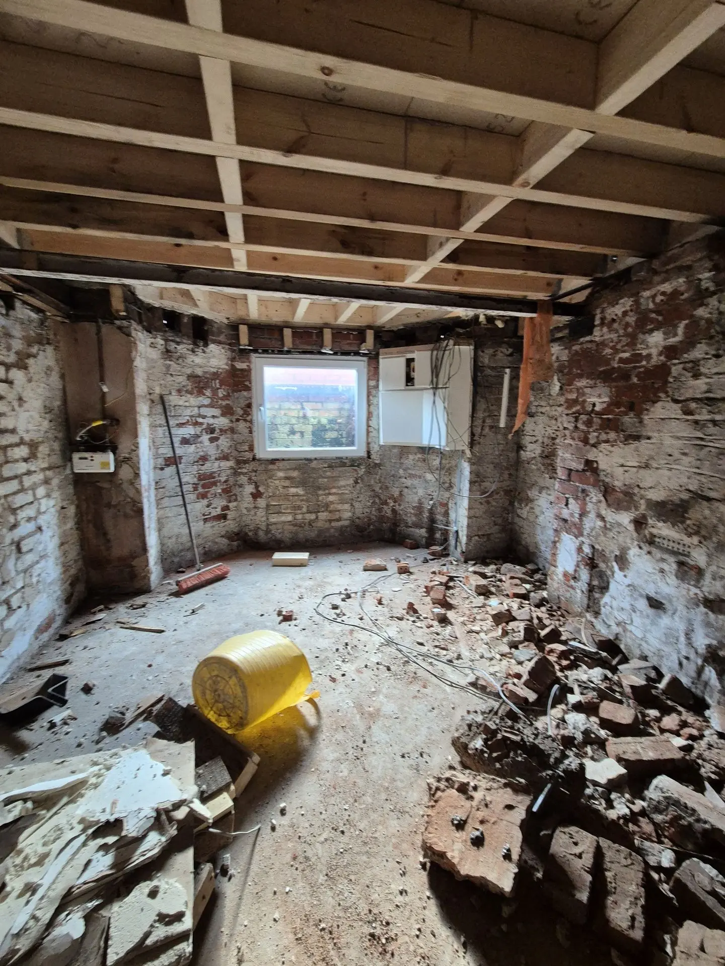 The team moved quickly through the internal strip-out and drainage phases, including the replacement of a key waste pipe beneath the kitchen slab. New internal room layouts are now underway, and roof works have officially started.